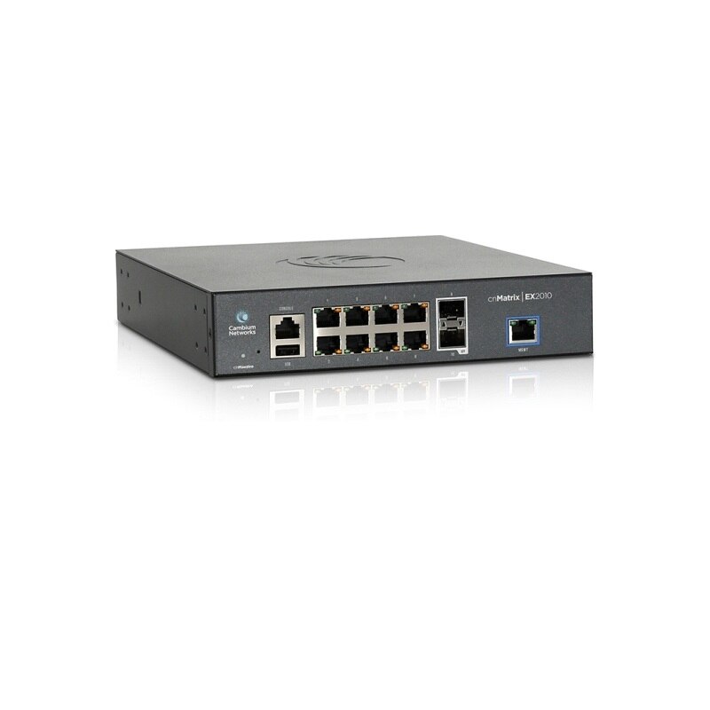 Cambium cnMatrix EX2010-P, Intelligent Ethernet PoE Switch, 8 1G and 2 SFP fiber - USA power Cord