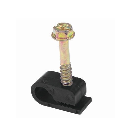 This 7/8" black grip clip allows you to hold a single coax cable line by inserting the line into the clip and then screwing it into the desired location. This prevents the cable from being easily snagged by securing it in an out-of-the-way place. This grip clip penetrates the surface of resistant material 1/2" allowing for a deeper gripping of the screw. Each bag contains 100 clips.