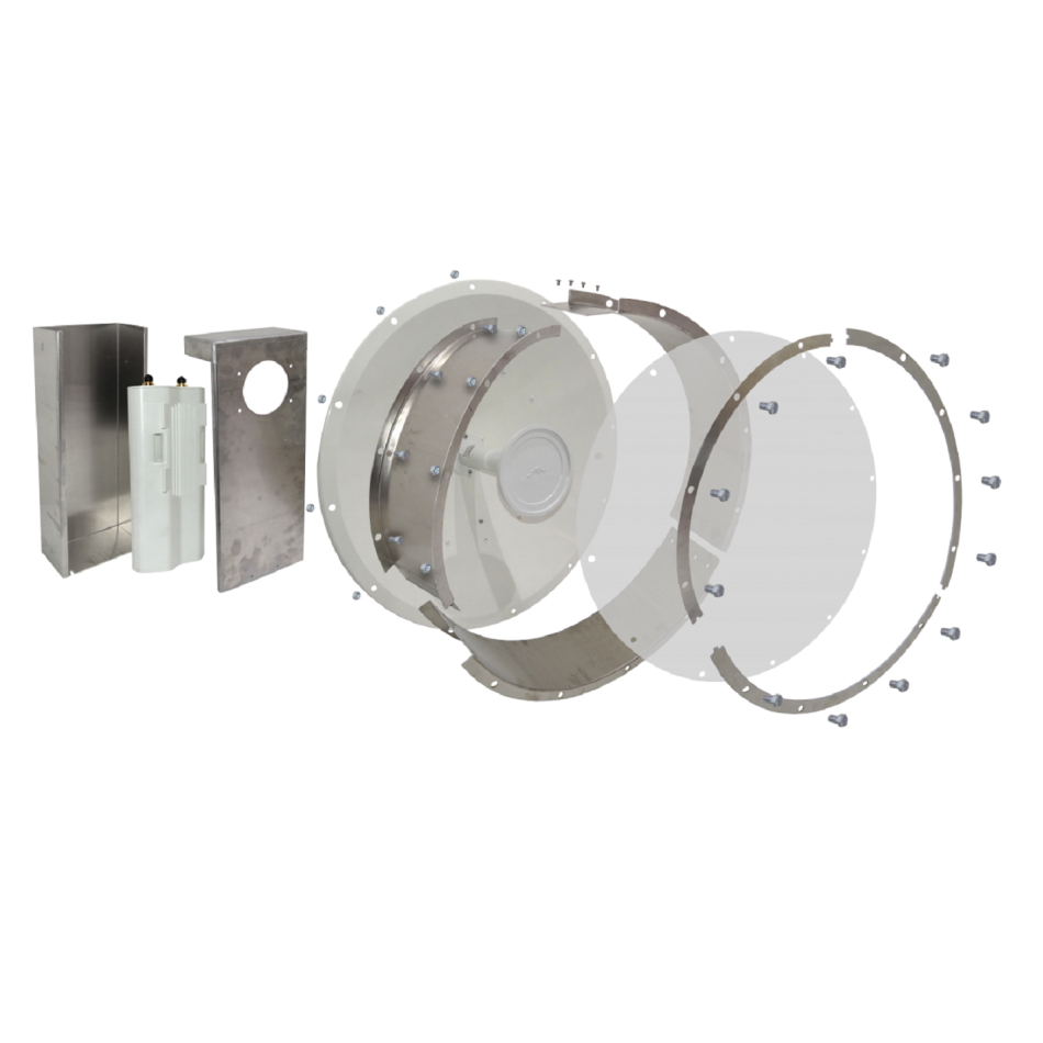 Our Rocket box replaces the Ubiquiti existing plastic mount and "fully" encases the radio within an aluminum box that has no openings larger than the quarter wave of the radio. Less expensive knock off Rocket covers utilize the existing radio mount and leave the back fully exposed to RF energy from nearby radios and those that may bounce off the back of the dish back at the radio.