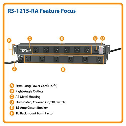Tripp Lite's RS-1215-RA Power Strip offers 15A capacity AC power distribution in a versatile multi-mount cabinet. Detachable mounting flanges are configurable for rackmount, wall-mount and under-counter installation. Uses only 1 rack space (1U) when installed in any 19-in. rack meeting EIA standards. Unfiltered electrical pass-through makes RS-1215-RA ideal for distributing alternate waveform UPS or generator power in rack enclosures, network closets and more.