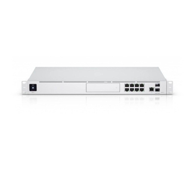 UniFi Dream Machine Pro (UDM-Pro) is an all-in-one enterprise network appliance. UDM-Pro integrates all current and upcoming UniFi controllers with a security gateway, 10G SFP+ WAN, 8-port Gbps switch and off-the-shelf 3.5" HDD support.
